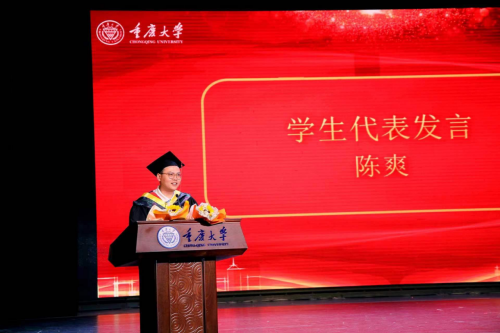 机械与运载工程学院2024届博士研究生陈爽代表毕业生进行发言。回忆重大往昔,心存感恩不舍,他号召大家“肩兹砥柱中流之责任”,不负青年赤诚热爱,不负师长殷殷嘱托,不负所处伟大时代。